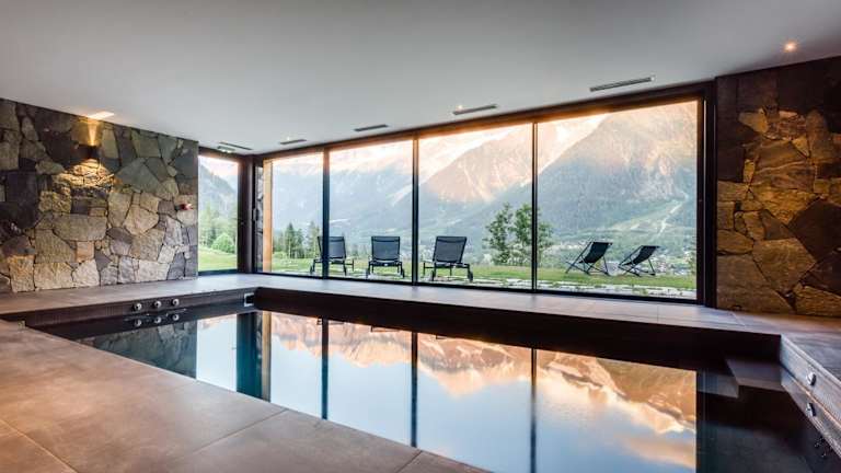 Le Chalet Mont Blanc bietet kostenloses WLAN, einen Garten mit Terrasse und Stadtblick. Des Weiteren stehen ein Innenpool und ein Fitnessraum zur Verfügung. Ein Privatparkplatz ist vor Ort verfügbar.