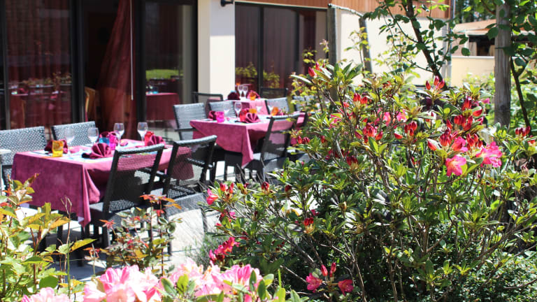 • Gutes Abendessen auf der schönen Gartenterrasse.