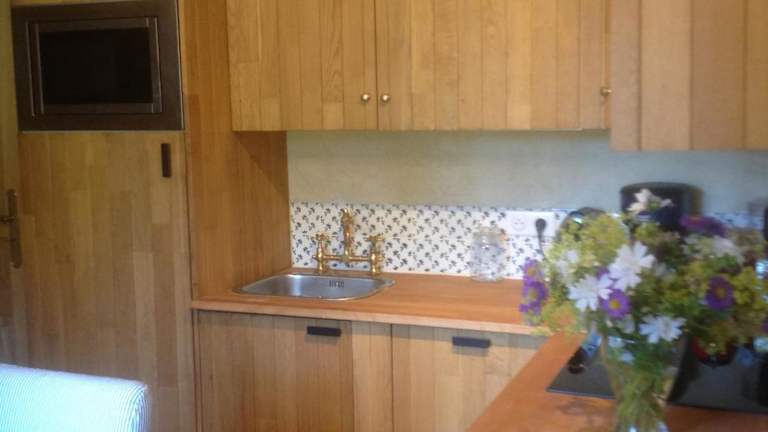 Das Ferienhaus verfügt über ein Schlafzimmer, ein Badezimmer mit Dusche, eine Küche mit Kühlschrank, Geschirrspüler und Ofen, sowie ein Wohnzimmer und einen Essbereich. Zur Unterhaltung gibt es einen Flachbild-TV mit Satellitenkanälen, einen Blu-ray-Player, eine Spielekonsole (PS3), einen DVD-Player und einen CD-Player.
