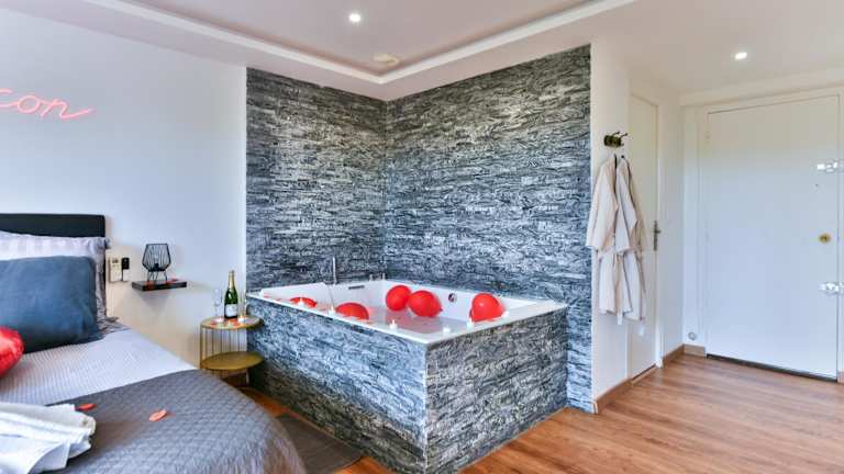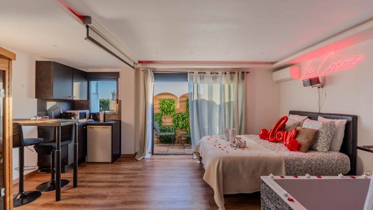 LE COCON- Jacuzzi & Sauna privés By SweetDreams bietet eine Unterkunft mit einer Terrasse und einem Balkon. Die Ferienwohnung ist mit kostenlosem WLAN ausgestattet und umfasst ein Schlafzimmer, ein Flachbild-TV sowie eine Küche, die mit einem Kühlschrank eingerichtet ist. Handtücher und Bettwäsche werden bereitgestellt.