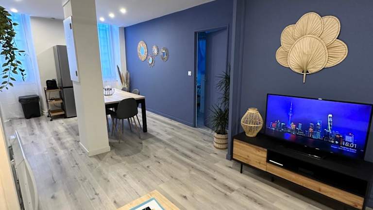 Das LE COSY - Classé 3 étoiles - Nay centre - Appartement verfügt über 2 Schlafzimmer, die Ihnen viel Platz und Komfort bieten. Die Küche ist mit einem Kühlschrank und einem Geschirrspüler ausgestattet, so dass Sie Ihre eigenen Mahlzeiten zubereiten können. Im Wohnbereich finden Sie einen Flachbild-TV und einen gemütlichen Sitzbereich. Das Apartment verfügt auch über ein eigenes Badezimmer mit einer Badewanne oder einer Dusche. Handtücher und Bettwäsche werden gestellt, um Ihren Aufenthalt so angenehm wie möglich zu gestalten.