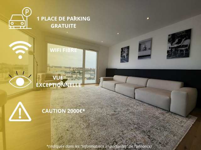 Le Davs - Splendide Appartement avec vue Panoramique - Salle de Sport et Parking Gratuit bietet ein Appartement im 8. Stock mit Blick auf die Stadt. Neben einem kostenfreien Parkplatz bietet die Unterkunft WLAN und einen beeindruckenden Ausblick auf den Fluss. Es wird darauf hingewiesen, dass Junggesellenabschiede oder ähnliche Feiern nicht gestattet sind und dass für den Check-in ein Mindestalter von 30 Jahren erforderlich ist.