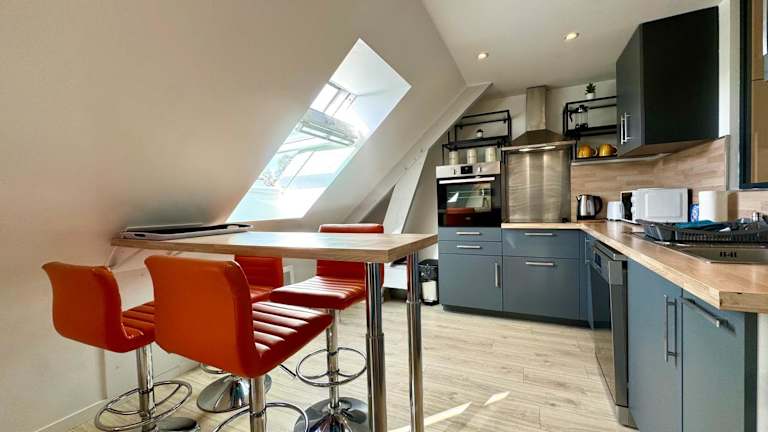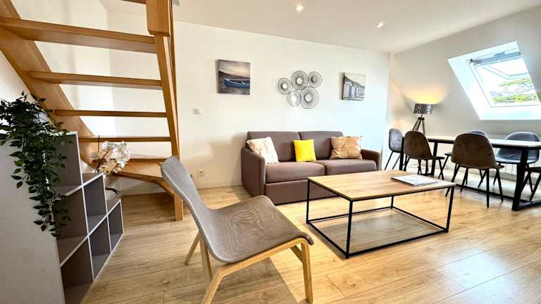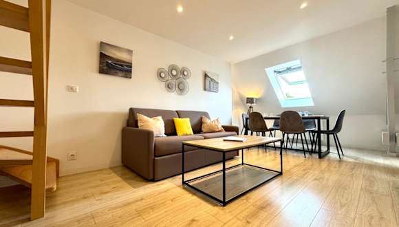 Le Duplex Merville - Lorient Centre bietet Übernachtungsmöglichkeiten in einer modernen Ferienwohnung mit Stadtblick und kostenlosem WLAN. Die Wohnung ist großzügig geschnitten und eignet sich für Familien oder Gruppen.