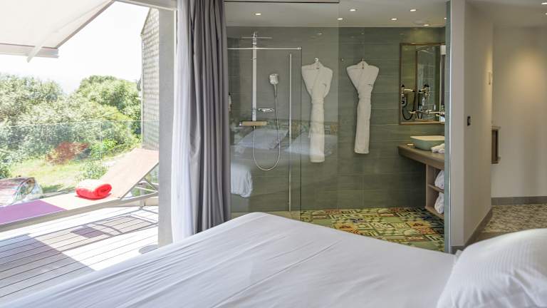 Die Zimmer sind mit Klimaanlage und Heizung ausgestattet und bieten Meerblick von Balkon oder Terrasse. Sie verfügen über Doppel- oder Kingsize-Betten, eine Minibar und einen Safe. Zudem gibt es kostenfreies WLAN, einen TV und ein Badezimmer mit Dusche und Badewanne. Auch rollstuhlgerechte Zimmer sind verfügbar. Das Hotel bietet Familienzimmer sowie Nichtraucherzimmer.