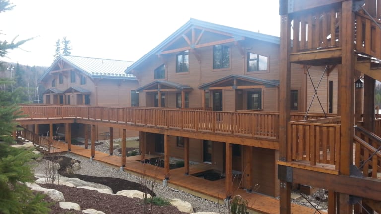 Aktivitäten in der Umgebung umfassen Skifahren, Radfahren, Kanufahren und Wandern. Es gibt einen eigenen Strandbereich sowie Möglichkeiten für Skiverleih, Skischule und Skiaufbewahrung.