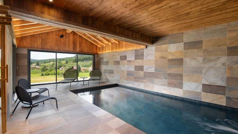 Le Grand V ist ein luxuriöses Chalet mit Innenpool und Sauna, das zahlreiche Annehmlichkeiten für einen komfortablen Aufenthalt bietet. Die Unterkunft ist ideal für entspannende Rückzugsorte in der Natur.