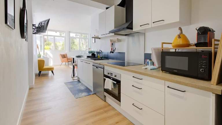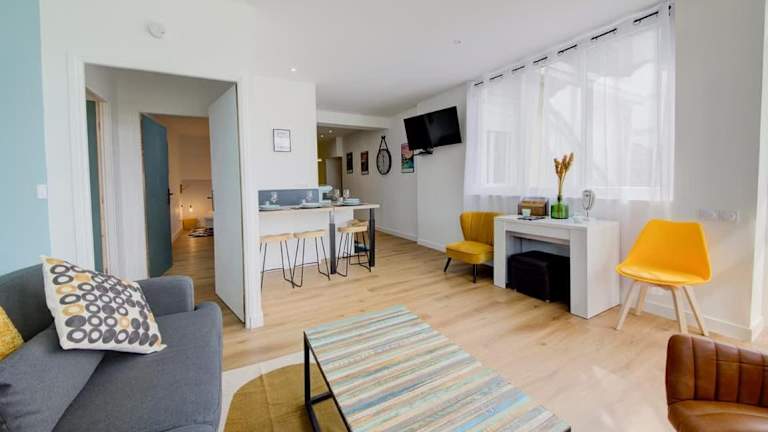 Le Green, appartement rénové, 4 chambres et jardin ist eine Ferienwohnung, die mit vier Schlafzimmern und zwei Badezimmern ausgestattet ist. Die Unterkunft bietet eine Veranda mit Patio und Stadtblick sowie verschiedene Annehmlichkeiten wie kostenloses WLAN und einen Garten. Aktivitäten wie Junggesellenabschiede sind in dieser Nichtraucherunterkunft nicht gestattet. Die Unterkunft wird von einem privaten Gastgeber verwaltet und hat spezifische Anforderungen für das Mindestalter beim Check-in.