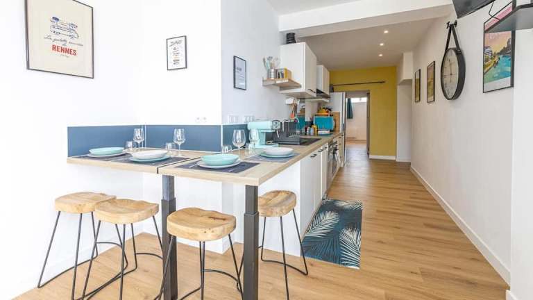 Die Unterkunft Le Green, appartement rénové, 4 chambres et jardin befindet sich weniger als 1,3 km von den U-Bahnhöfen Clemenceau und Jacques Cartier in Rennes. Weitere U-Bahnhöfe in der Nähe sind U-Bahnhof Henri Fréville, République und Charles de Gaulle, die leicht zu erreichen sind. Die Distanz zum Flughafen Aéroport Rennes – Saint-Jacques beträgt etwa 4 km.