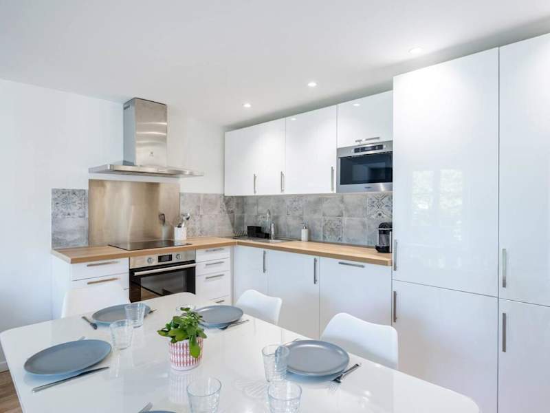 Die Ferienwohnung verfügt über zwei Schlafzimmer, ein Wohnzimmer mit Flachbild-TV, eine gut ausgestattete Küche mit Kühlschrank und Geschirrspüler sowie ein Badezimmer mit Dusche. Handtücher und Bettwäsche werden zur Verfügung gestellt. Die Unterkunft bietet außerdem eine Terrasse mit Gartenblick.