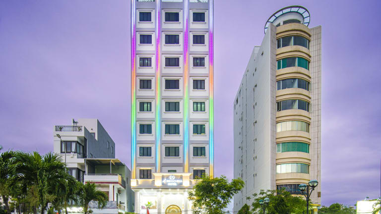 Das Le Indochina Hotel & Beach Da Nang City befindet sich in Da Nang, einer malerischen Stadt in der gleichnamigen Munizipalität. Es liegt nur 800 m vom Strand My An Beach entfernt, sodass Sie die wunderschöne Küste und das klare Wasser in kürzester Zeit erreichen können. Die Lage des Hotels ist auch ideal für Ausflüge zu Sehenswürdigkeiten wie der Liebesschlossbrücke Da Nang und dem Cham Museum, die beide nur wenige Kilometer entfernt sind. Der Flughafen Đà Nẵng ist ebenfalls leicht zu erreichen und bietet eine bequeme Anreisemöglichkeit.