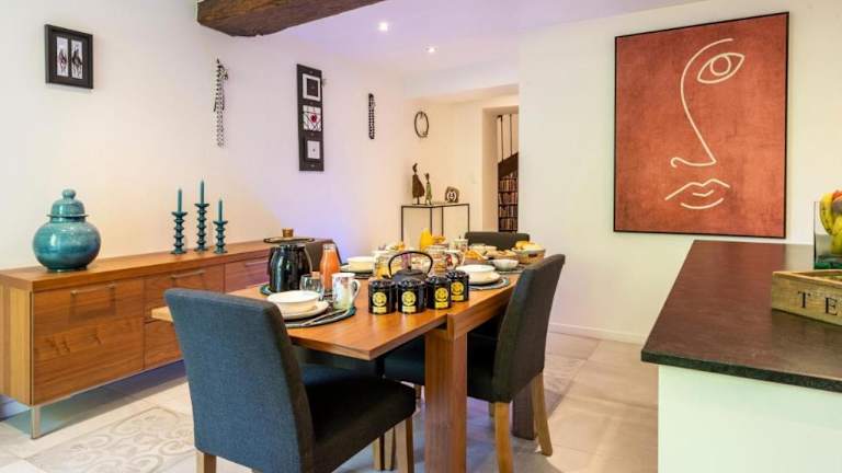 Das Le Jardin Suspendu ist eine charmante Unterkunft in einem historischen Herrenhaus aus dem 15. Jahrhundert im Zentrum von Montfaucon sur Moine. Hier erwartet Sie eine malerische Umgebung mit angelegten Gärten und einem Fluss, sowie komfortable Zimmer mit kostenfreiem WLAN. Genießen Sie ein köstliches kontinentales Frühstück und erkunden Sie die vielfältigen Freizeitmöglichkeiten in der Umgebung.