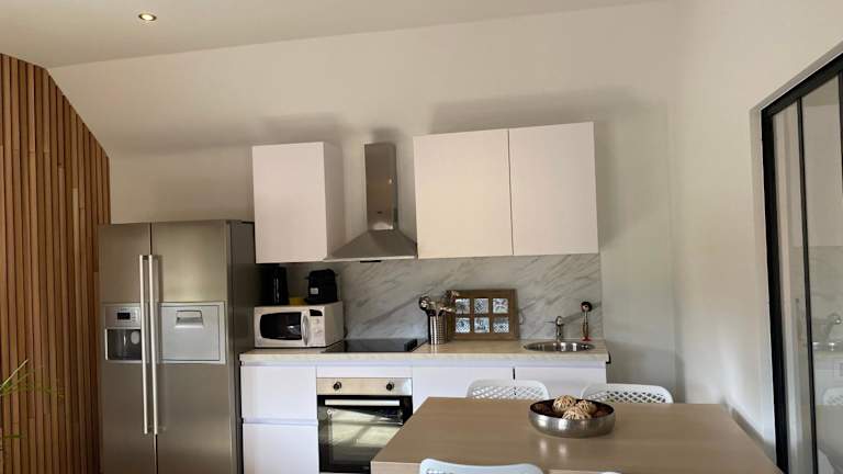 Die Unterkunft bietet die Möglichkeit zur Selbstverpflegung, da eine gut ausgestattete Küche mit Kühlschrank und Geschirrspüler vorhanden ist.