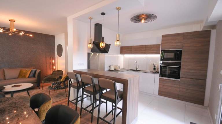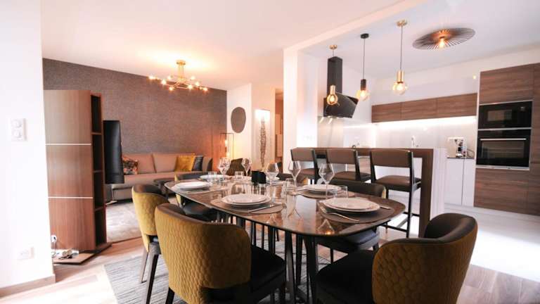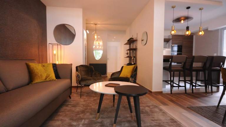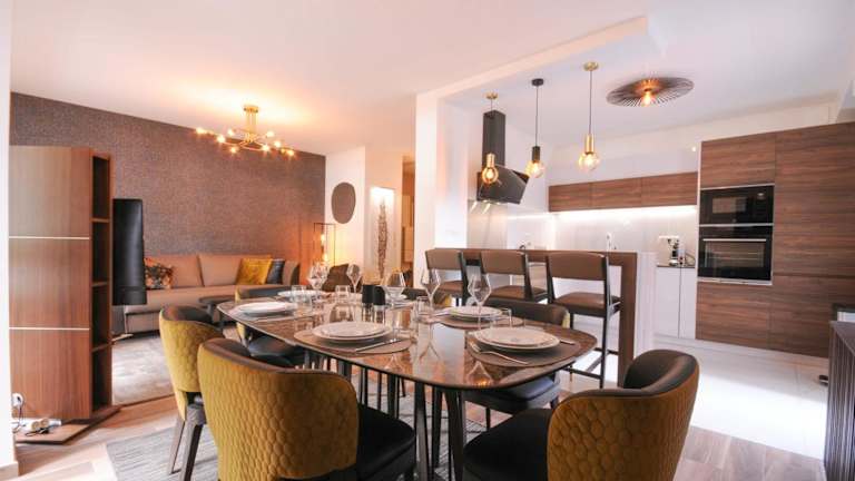 Le Matignon - Design apartment facing Lake Annecy bietet Übernachtungsmöglichkeiten in Form von Ferienwohnungen mit einem Balkon sowie kostenlosem WLAN. Die Unterkunft ist klimatisiert und erstreckt sich über zwei Schlafzimmer, ein Wohnzimmer und eine voll ausgestattete Küche.