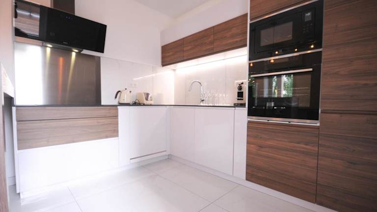 Die Ferienwohnung verfügt über eine voll ausgestattete Küche mit Kühlschrank und Kaffeemaschine, zwei Badezimmer mit Dusche und kostenlosen Pflegeprodukten sowie über Handtücher und Bettwäsche.