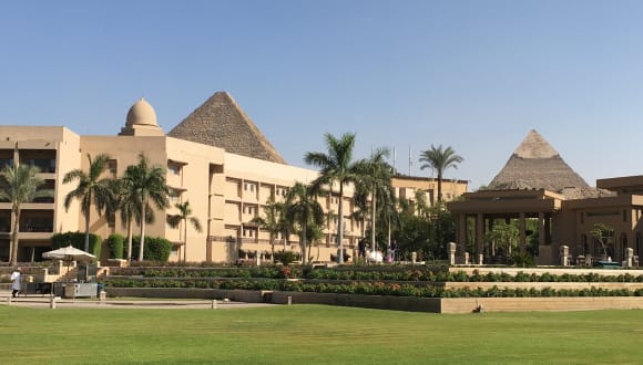 Das Hotel Le Meridien Pyramids in Gizeh bietet seinen Gästen einen atemberaubenden Ausblick auf die Pyramiden von Gizeh, einem der 7 Weltwunder. Das luxuriöse Hotel liegt inmitten einer gepflegten Gartenanlage und ist nur etwa 15 Minuten von Kairo entfernt. Die Unterkunft verfügt über zahlreiche Annehmlichkeiten wie einen Außenpool, einen Innenpool, einen Whirlpool, ein Spa, ein Fitnessstudio und Tennisplätze. Das gastronomische Angebot umfasst ein Buffetrestaurant, ein À-la-carte-Restaurant, eine Bar und ein Café. Die Zimmer sind komfortabel eingerichtet und verfügen über Klimaanlage, Balkon oder Terrasse und kostenfreies WLAN. Für Familien gibt es einen Kinderpool und einen Kinderspielplatz.