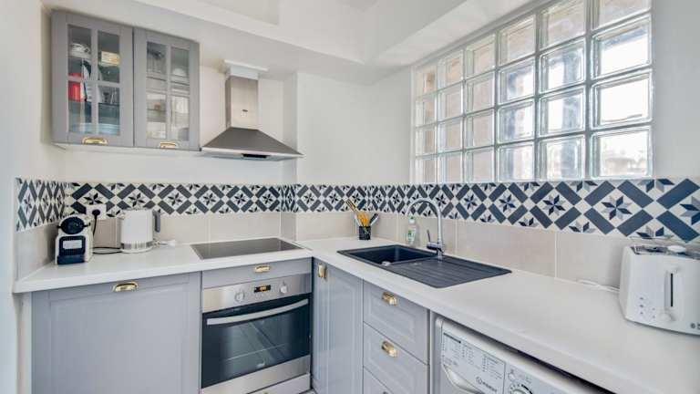 Die Ferienwohnung verfügt über 1 Schlafzimmer, eine Küche, die mit einem Kühlschrank und einem Geschirrspüler ausgestattet ist, sowie ein Badezimmer mit einer Dusche. Handtücher und Bettwäsche werden bereitgestellt.
