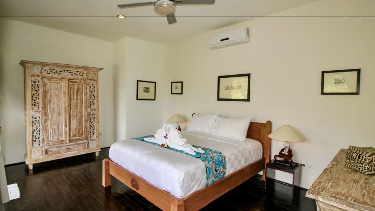 Die Le Mirage Villa Santai in Lovina ist ein traumhaftes Urlaubsziel, das mit einem Außenpool, einem wunderschönen Garten und einer Terrasse mit Meerblick begeistert. Das kostenfreie WLAN und die kostenfreien Privatparkplätze sind weitere Pluspunkte. Genießen Sie Aktivitäten wie Wandern und Radfahren in der Umgebung und entspannen Sie in der klimatisierten Villa mit 5 separaten Schlafzimmern und 6 Badezimmern. Freuen Sie sich auf modernen Komfort mit Flachbild-Kabel-TV, Blu-ray-Player, DVD-Player, CD-Player und iPod-Dockingstation. Das köstliche Frühstück mit einer Auswahl an englischen/irischen, amerikanischen und asiatischen Speisen lässt Sie gestärkt in den Tag starten. Entdecken Sie die Umgebung mit dem Fahrrad oder mieten Sie ein Auto. Der Strand Lovina und der Strand Ganesha sind nur wenige Kilometer entfernt. Der internationale Flughafen Denpasar ist etwa 86 km von der Unterkunft entfernt. Gegen Gebühr können Sie den Flughafentransfer in Anspruch nehmen.
