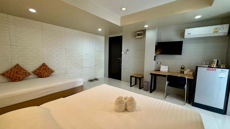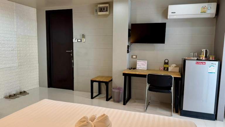 Die Zimmer im Hotel Le Neuf Nakorn Lampang sind komfortabel und modern eingerichtet. Jedes Zimmer verfügt über eine Klimaanlage, einen Smart-TV und ein eigenes Badezimmer mit kostenfreien Pflegeprodukten. Die Gäste können auch den kostenfreien WLAN-Zugang in allen Bereichen des Hotels nutzen.