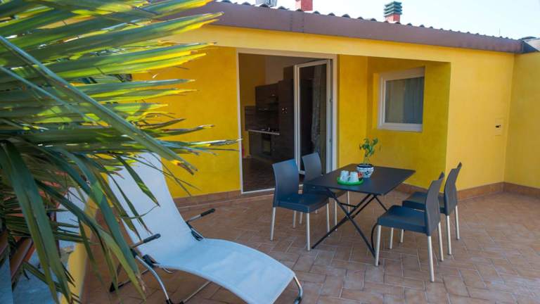 Le Palme Sona bietet moderne Wohneinheiten mit kostenlosem WLAN, Klimaanlage und einer einladenden Garten- sowie Terrassengestaltung. Die Unterkünfte sind mit einer voll ausgestatteten Küche und einem Esstisch ausgestattet.