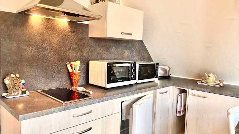 Das klimatisierte Apartment im Le papillon, Logement cosy en Alsace bietet eine komfortable Unterkunft mit einer voll ausgestatteten Küche. Das Apartment verfügt über ein Schlafzimmer, ein Wohnzimmer und ein Badezimmer mit einer Dusche und kostenlosen Pflegeprodukten. Handtücher und Bettwäsche werden gestellt, um Ihnen einen angenehmen Aufenthalt zu ermöglichen. Die Terrasse und die Veranda bieten zusätzlichen Platz zum Entspannen und Genießen der Umgebung.