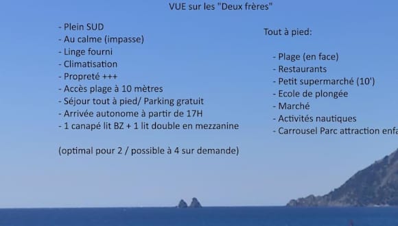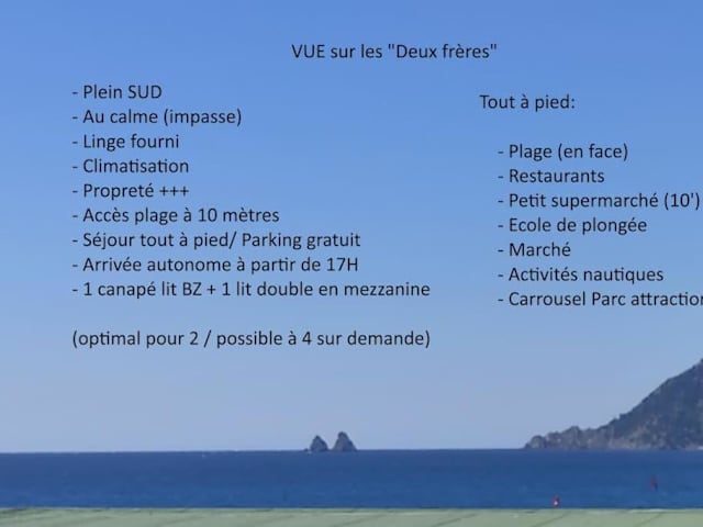 Die Unterkunft befindet sich in La Seyne-sur-Mer, nur 30 m vom Strand Plage des Sablettes entfernt und in der Nähe weiterer Strände wie Plage de Sainte-Asile (1 km) und Plage de Vernette (2,2 km). Die Umgebung bietet eine ruhige Atmosphäre mit direktem Zugang zum Strand. Zu den Sehenswürdigkeiten in der Nähe gehören die Konzerthalle Zénith Oméga Toulon (11 km) und die Motorsport-Rennstrecke Circuit Paul Ricard (35 km). Der nächstgelegene Flughafen ist der Flughafen Toulon-Hyères, der sich 31 km entfernt befindet.