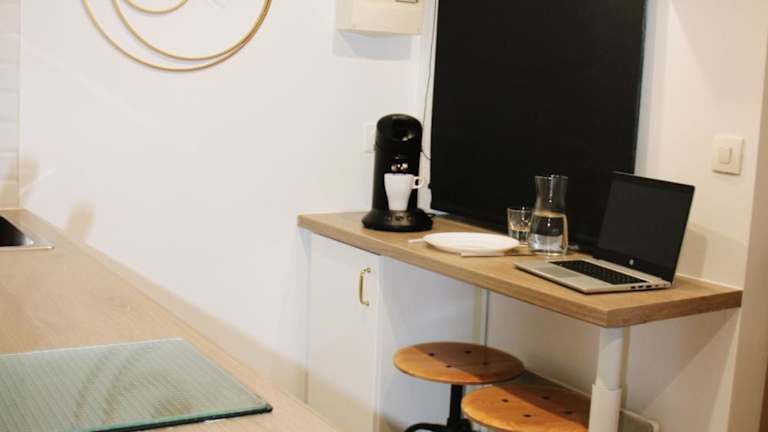 Das Apartment im LE PETIT TRIPLEX DES CARMELITES -COEUR HISTORIQUE verfügt über ein gemütliches Schlafzimmer und eine gut ausgestattete Küche. Hier finden Sie alles, was Sie für Ihren Aufenthalt benötigen, einschließlich eines Kühlschranks, eines Backofens und einer Kaffeemaschine. Handtücher und Bettwäsche werden gestellt, um Ihren Aufenthalt so angenehm wie möglich zu gestalten.