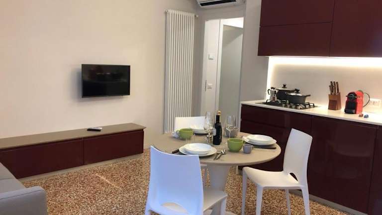 Le Piazzette Schio bietet eine Veranda/Pavillon mit Blick auf die Stadt, kostenlosen Privatparkplatz und kostenfreies WLAN. Die Ferienwohnung ist klimatisiert und umfasst ein Schlafzimmer sowie ein Wohnzimmer.