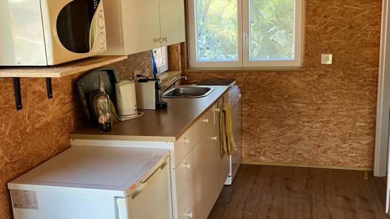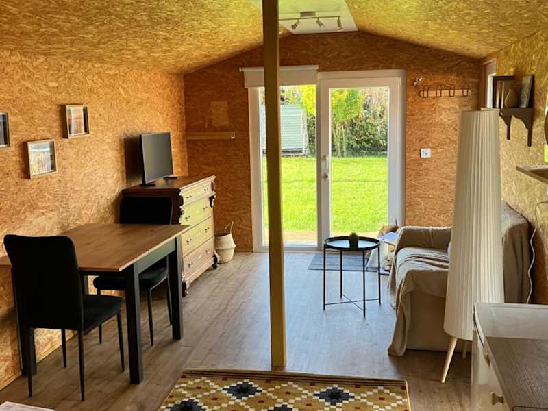 Das Chalet verfügt über ein Schlafzimmer, ein Badezimmer, Bettwäsche, Handtücher und einen Flachbild-TV mit Kabelkanälen. Zudem gibt es einen Essbereich, eine voll ausgestattete Küchenzeile und eine Terrasse mit Blick auf die Berge.