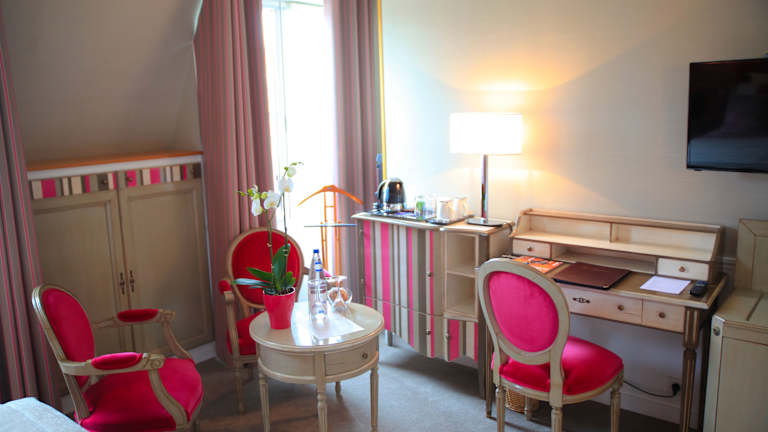 Beginnen Sie Ihren Tag mit einem köstlichen warmen Frühstücksbuffet, das im Relais Saint Jacques serviert wird. Das Hotel verfügt auch über eine modische Bar und einen stilvollen Salon im Stil von Louis XV, in dem Sie entspannen können.