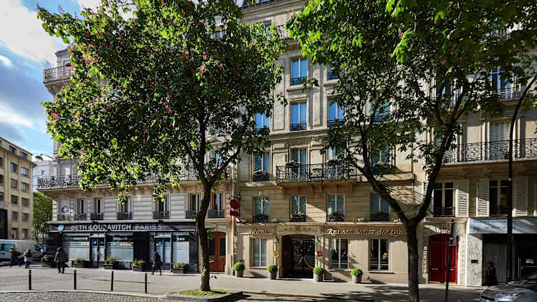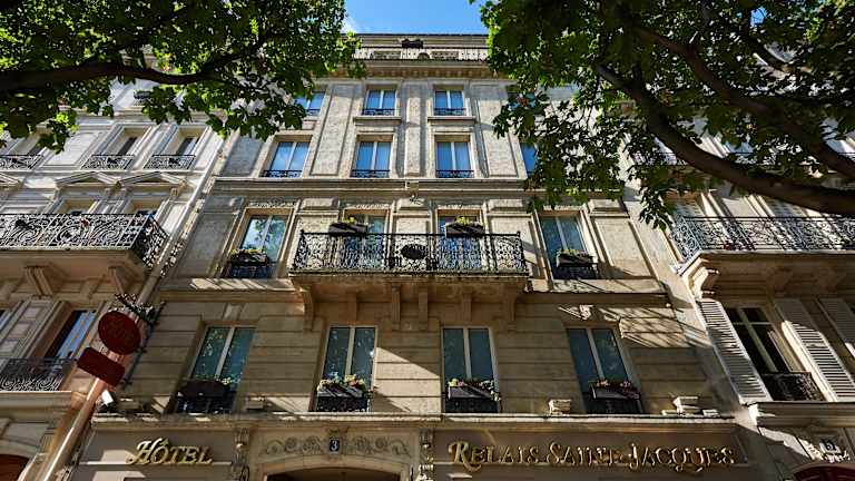 Das Relais Saint Jacques im Quartier Latin von Paris bietet eine ruhige Lage und kostenfreien WLAN-Zugang. Die komfortablen Zimmer sind individuell eingerichtet und bieten einen herrlichen Blick auf die grüne Rue de l'Abbé oder das berühmte Panthéon. Genießen Sie das warme Frühstücksbuffet und entspannen Sie in der modischen Bar oder im Salon im Stil von Louis XV. Das Hotel ist ideal gelegen, nur einen kurzen Spaziergang von den Cafés und Geschäften in Saint-Germain des Prés und Montparnasse entfernt.