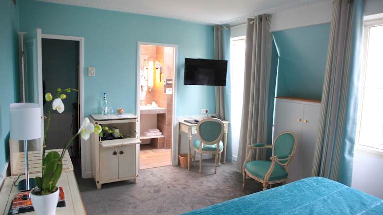 Die komfortablen und geräumigen Zimmer im Relais Saint Jacques sind individuell eingerichtet und bieten einen gemütlichen Rückzugsort nach einem ereignisreichen Tag in Paris. Alle Zimmer verfügen über einen LCD-TV, kostenfreies WLAN und ein eigenes Badezimmer. Genießen Sie den Blick auf die grüne Rue de l'Abbé oder das berühmte Panthéon.