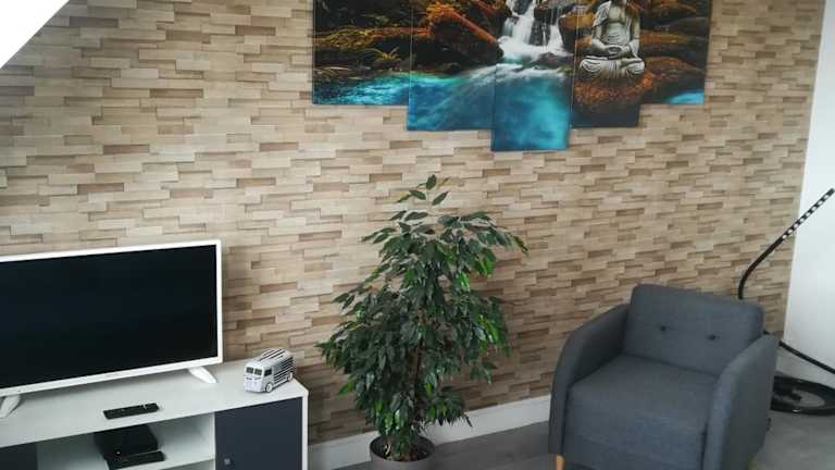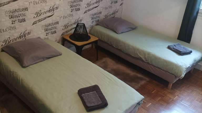 Die Ferienwohnung umfasst eine Spielekonsole, zwei Schlafzimmer, ein Badezimmer mit Dusche, ein Wohnzimmer, einen Essbereich sowie eine voll ausgestattete Küche mit Kühlschrank, Geschirrspüler und Ofen. Handtücher und Bettwäsche werden bereitgestellt.