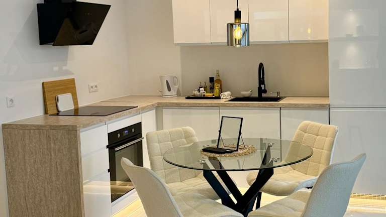 Die Unterkunft bietet die Möglichkeit zur Essenslieferung. Eine voll ausgestattete Küche mit Kühlschrank und Kaffeemaschine ist vorhanden, wodurch Selbstversorgungsmöglichkeiten gegeben sind.