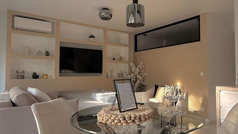 Le Soleil Tropézien, Somptueux 2 pièces - Terrasse Vue Mer ist eine Ferienwohnung mit Balkon und herrlichem Wasserblick. Die Unterkunft lässt sich durch ihre geschmackvolle Ausstattung und Annehmlichkeiten wie eine Terrasse und eine Bar hervorheben. Kostenloses WLAN steht in der gesamten Unterkunft zur Verfügung.