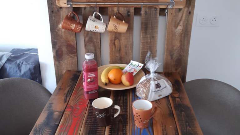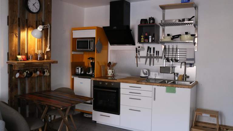 Das Le Studio de Sophie bietet eine voll ausgestattete Küche, in der die Gäste ihre eigenen Mahlzeiten zubereiten können. Alternativ gibt es in der Umgebung verschiedene Restaurants und Cafés, in denen Sie lokale Spezialitäten genießen können.