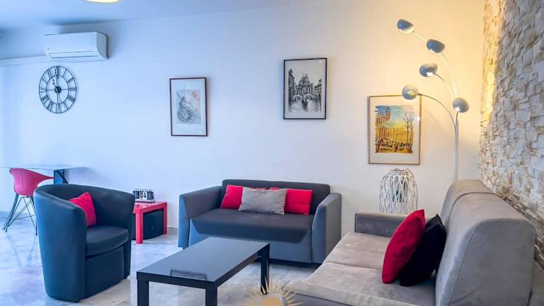 Die Unterkunft liegt ca. 2 km vom Strand Plage du Palais des Festivals entfernt und ist etwa 2,2 km von der Plage de la Croisette gelegen. Außerdem befindet sich das Palais des Festivals et des Congrès in einer Entfernung von 1,8 km. Der nächstgelegene Flughafen ist der Aéroport Nice Côte d’Azur, der ungefähr 24 km entfernt ist.