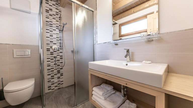 Die Ferienwohnung umfasst ein Schlafzimmer, ein Wohnzimmer sowie zwei Badezimmer mit Dusche. Zur Ausstattung gehören außerdem ein TV sowie Handtücher und Bettwäsche.