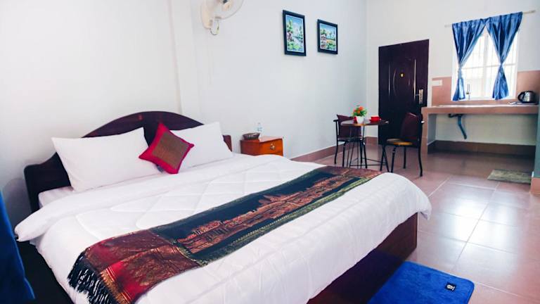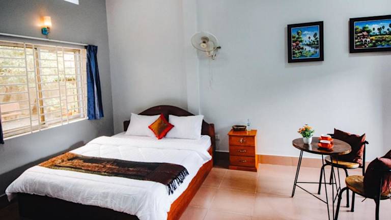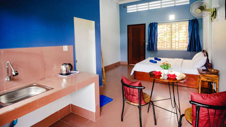 Das Lea's Guesthouse and Restaurant in Phumĭ Phlov Phnum Pénh ist der ideale Ort für Reisende, die eine komfortable Unterkunft mit exzellentem Service suchen. Mit einem schönen Garten, kostenfreien Privatparkplätzen und kostenfreiem WLAN bietet das Guesthouse alles, was man für einen angenehmen Aufenthalt benötigt. Das Restaurant verwöhnt die Gäste mit köstlichen asiatischen und vegetarischen Gerichten. Die klimatisierten Zimmer sind geräumig und bieten einen schönen Blick auf den Garten. Die freundlichen Mitarbeiter stehen rund um die Uhr zur Verfügung und sorgen dafür, dass alle Wünsche erfüllt werden. Die Lage des Guesthouse ist ideal, um die Umgebung zu erkunden, da Sehenswürdigkeiten wie die Kampot-Pagode und das Provinzmuseum Kampot in der Nähe liegen.
