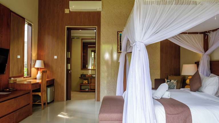 Die Zimmer im Lebak Bali Residence sind klimatisiert und verfügen über einen Flachbild-Sat-TV, einen Kleiderschrank und ein eigenes Badezimmer mit Dusche. Die Zimmer bieten Komfort und Bequemlichkeit für einen angenehmen Aufenthalt.