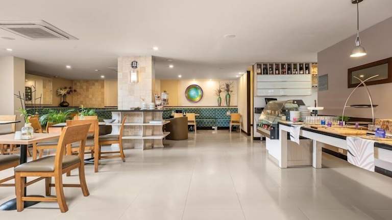 Im Hotel gibt es ein Restaurant, in dem Sie Frühstück, Mittag- und Abendessen genießen können. Das Frühstück wird als Buffet serviert.