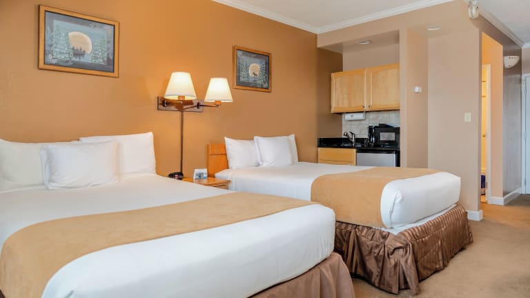 Die Zimmer sind mit Klimaanlage, Heizung und Teppichboden ausgestattet. Es stehen Doppelbetten, Queensize-Betten, Kingsize-Betten oder Sofabetten zur Verfügung. Sie bieten zudem separate Schlafzimmer. Ausgestattet sind die Zimmer mit Safe, Schreibtisch, Kühlschrank, Herd, Mikrowelle und einer Tee-/Kaffeemaschine. Des Weiteren sind Waschmaschine und Bügelset vorhanden. Ein TV-Gerät mit Satelliten-/Kabelempfang, Radio, CD- und DVD-Player sowie kostenloses WLAN sind ebenfalls Bestandteil der Zimmerausstattung. Die Badezimmer verfügen über Dusche und Badewanne sowie Haartrockner und Kosmetikartikel. Das Hotel bietet Familien- und Nichtraucherzimmer.