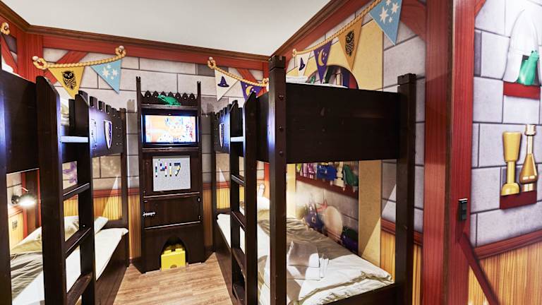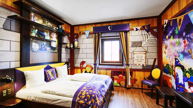 Im LEGOLAND Castle Hotel können Sie zwischen verschiedenen Themenzimmern wählen, darunter Princess-, Wizard- und Dragon-Knight-Zimmer. Alle Zimmer sind liebevoll gestaltet und verfügen über ein eigenes Bad mit Dusche und kostenfreien Pflegeprodukten. Die Zimmer sind klimatisiert und mit einem Schreibtisch ausgestattet. Hier können Sie spielen und schlafen wie echte Ritter und Prinzessinnen.