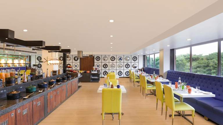 Gäste können zwischen einem Buffet-Frühstück und einem kontinentalen Frühstück wählen. Die gastronomische Atmosphäre wird durch ein Restaurant und eine Bar ergänzt.