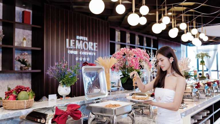 Das Le More Hotel in Nha Trang bietet Ihnen einen komfortablen Aufenthalt in Strandnähe. Mit einem freundlichen Personal, einem Außen- und Innenpool, einem Fitnesscenter und einem Kinderspielplatz bietet das Hotel eine Vielzahl von Annehmlichkeiten. Genießen Sie ein leckeres Frühstück und nutzen Sie den kostenfreien WLAN-Zugang. Entdecken Sie die beliebten Sehenswürdigkeiten in der Nähe und lassen Sie sich vom Flughafen abholen.