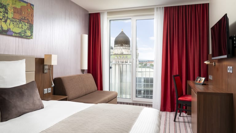 Das Hotel befindet sich in bester Altstadtlage und das Internationale Congress Center, die ausufernden Elbterrassen und die malerische Altstadt liegen Ihnen direkt zu Füßen.