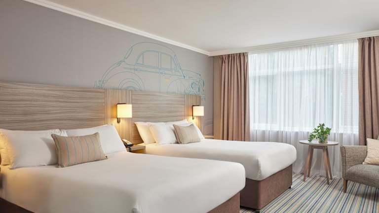 Die Zimmer sind geräumig und verfügen über hochwertige Dream-Betten, einen Arbeitsbereich sowie Tee- und Kaffeezubehör. Jedes Zimmer hat ein eigenes Bad, das mit einem Haartrockner und Kosmetikartikeln ausgestattet ist. Es stehen außerdem Familienzimmer und rollstuhlgerechte Unterkünfte zur Verfügung.
