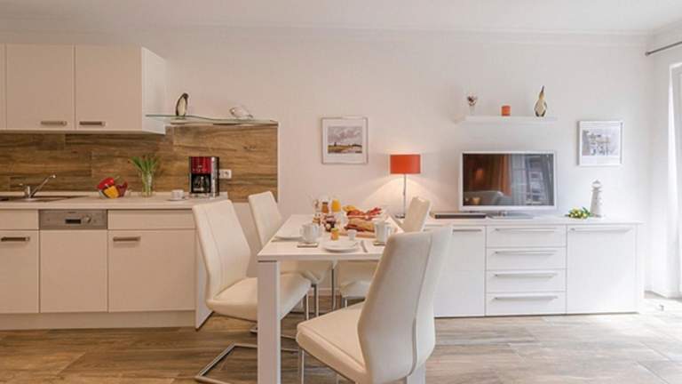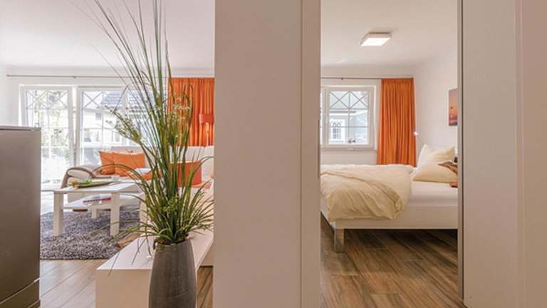 Die Ferienwohnung umfasst ein Schlafzimmer, ein Wohnzimmer und eine gut ausgestattete Küchenzeile mit Kühlschrank und Geschirrspüler. Handtücher und Bettwäsche werden bereitgestellt. Es handelt sich um eine Nichtraucherunterkunft, in der alle öffentlichen und privaten Bereiche Nichtraucherzonen sind.