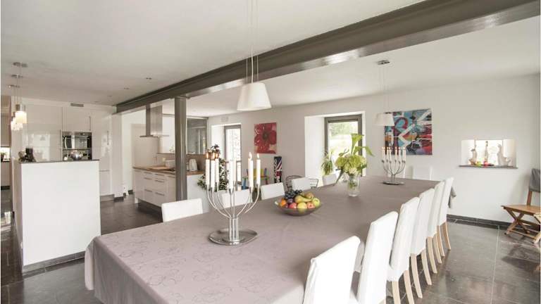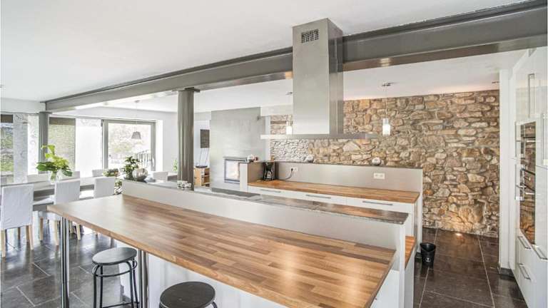Das Ferienhaus umfasst 6 Schlafzimmer, ein Wohnzimmer und eine voll ausgestattete Küche, die mit einem Kühlschrank und einer Kaffeemaschine ausgestattet ist. Zudem stehen den Gästen 3 Badezimmer zur Verfügung, die sowohl über eine Dusche als auch eine Badewanne verfügen.