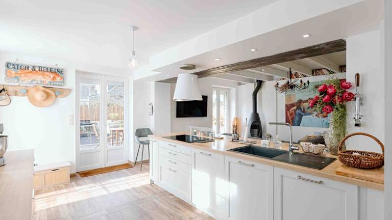 Das Ferienhaus verfügt über 2 Schlafzimmer und 1 Badezimmer. Zur Ausstattung gehören Bettwäsche, Handtücher, ein Flachbild-TV, ein Essbereich, eine voll ausgestattete Küche und eine Terrasse mit Gartenblick. Die Unterkunft bietet auch Grillmöglichkeiten.