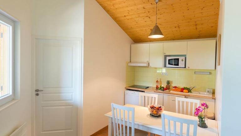 Im Sommer steht Ihnen in der Residenz Les Cottages du Lac eine Snackbar zur Verfügung, in der Sie kleine Snacks und Erfrischungen genießen können. Wenn Sie lieber selbst kochen möchten, finden Sie in den Cottages und Apartments eine gut ausgestattete Küche.